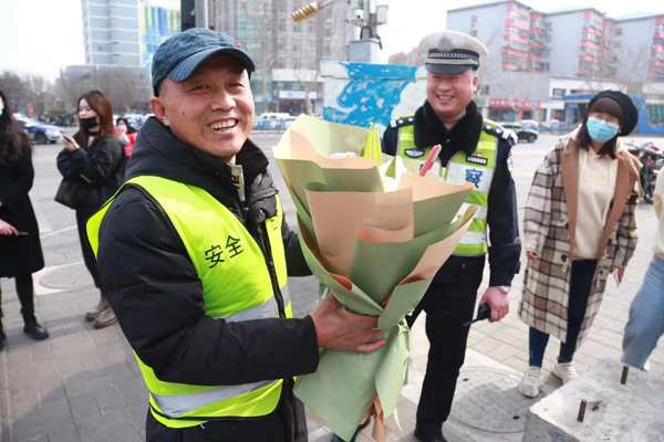 2月28日,被救车主刘女士为陈军波和孙其献花致谢