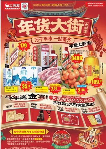 春节的脚步渐近,年味在商超的烟火气中愈发浓郁。近日,大润发年货大街促销活动开启,以黄金周边+实在年货为核心,联合宝洁、百事可乐、可