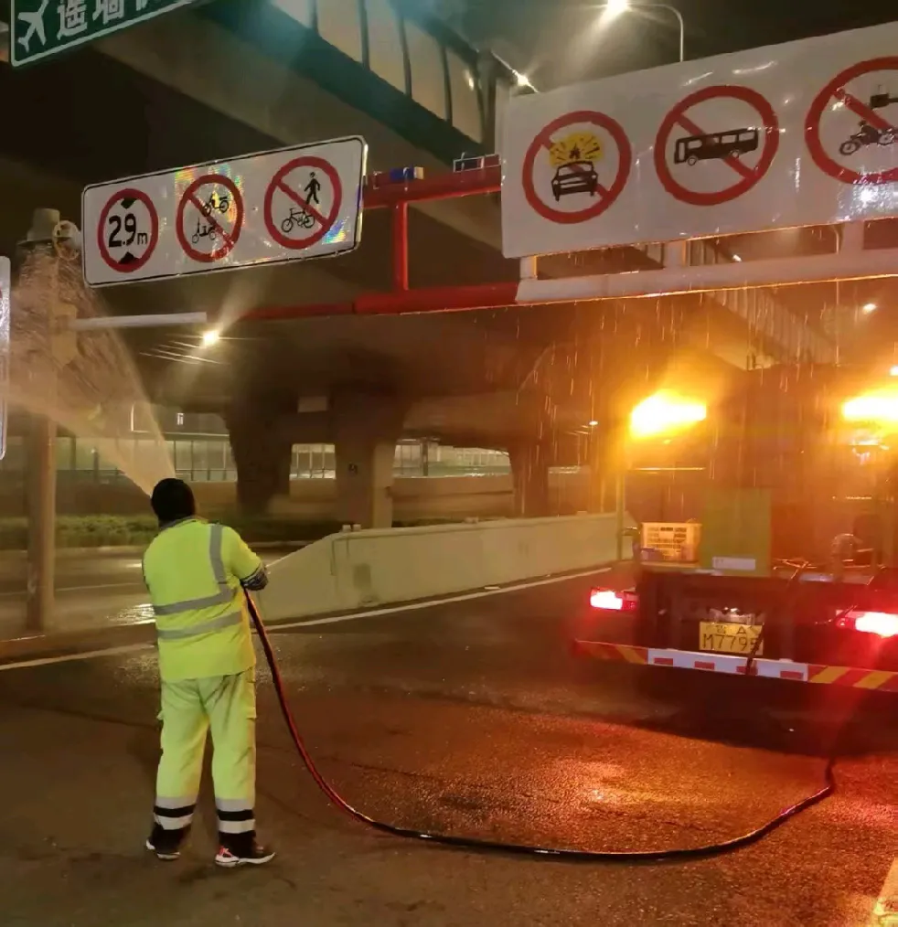 洁净的道路是城市最直观的“颜值担当”,更牵动着市民出行的幸福感。面对天气“变脸”,雨前大队逐个排查清理下水口的落叶与淤泥;雨后立即启动“深度焕新”模式,洗扫车对路面积垢、泥沙展开“地毯式”清扫与冲洗,反复清扫、清洗,彻底清除雨后积垢,力争用最短时间恢复路面原貌,将精细化保洁执行到一点一缝一角,使路面重现光泽,交通标线亮出清晰“轮廓”。机扫人用责任、担当、热情坚守在城市高架路,以责任清单护航城市美好,努力营造干净整洁的城市高架路出行环境。
