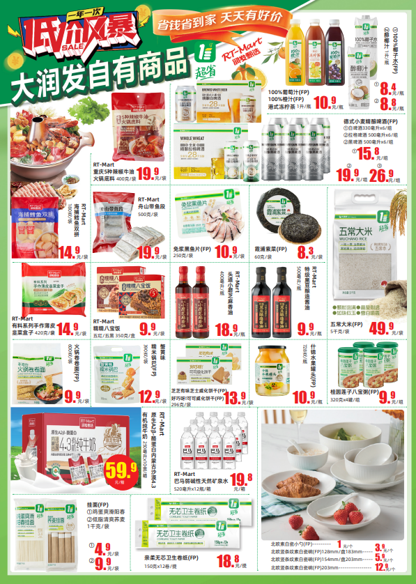 深耕供应链的大润发,此次将自有品牌“润发甄选和超省”的优势产品集中呈现,用“源头直采+严控品质”诠释“实在好货”。想在家煮顿热辣火锅?重庆5种辣椒牛油火锅底料以19.9元/袋的诚意价,还原地道川味;追求便捷餐食?海捕鳕鱼双拼14.9元/袋、糯糯八宝饭9.9元/袋,轻松解决一餐;连日常饮水也有惊喜——巴马弱碱性天然矿泉水19.8元/箱,为健康加分。从调味到主食,从海鲜到饮品,自有品牌以“高性价比+强实用性”成为家庭囤货的安心之选。
