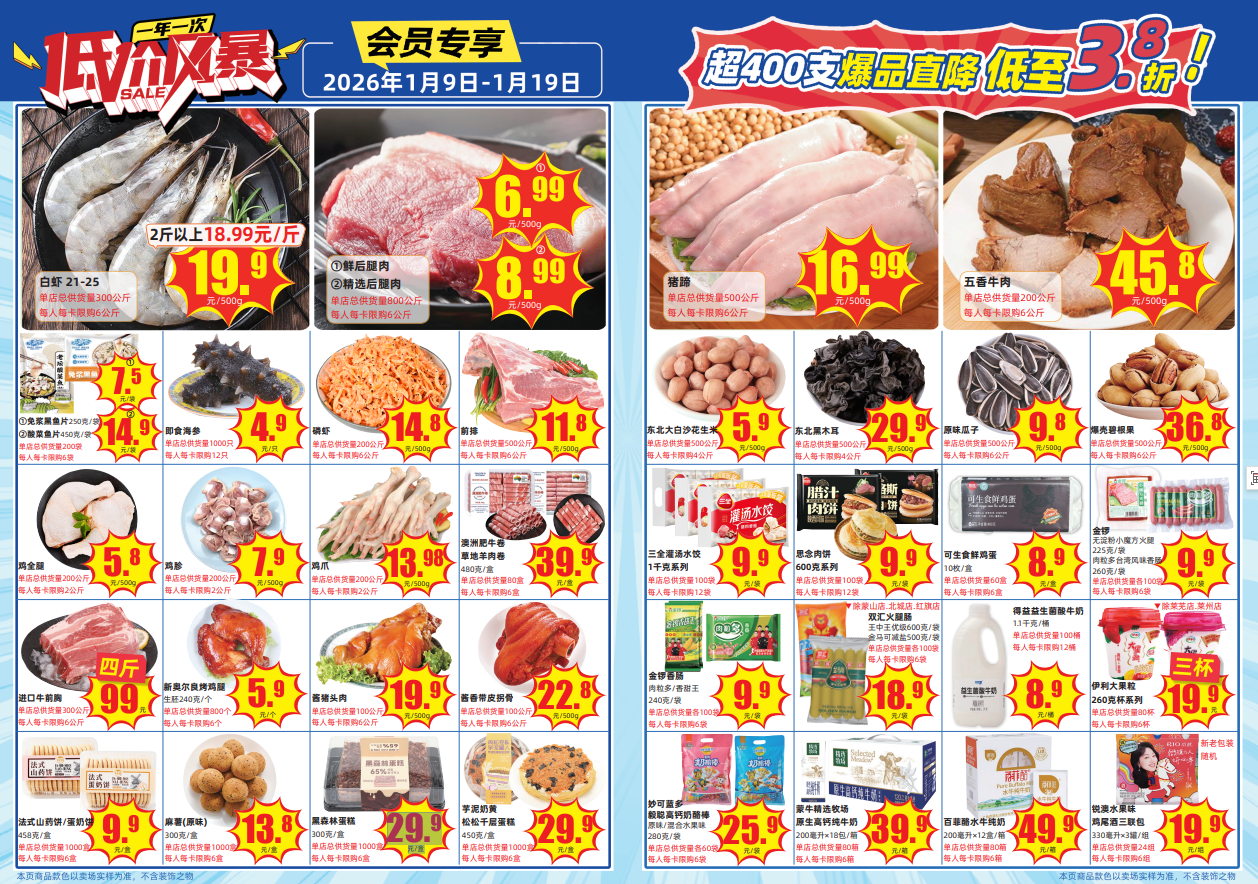 年味渐近,大润发加工区也上新多款人气单品,让“现成美味”点亮餐桌。新奥尔良烤鸡腿5.9元/个外酥里嫩,酱猪头肉19.9元/500g、五香牛肉45.8元/500g,卤香浓郁满足下酒佐餐;甜点区更添惊喜——法式山药饼/蛋奶饼9.9元/盒松软可口,芋泥奶黄松松千层蛋糕29.9元/盒、黑森林蛋糕29.9元/盒,用绵密口感为午后或聚会添彩。这些“即拿即食”的加工经典,让忙碌的生活也能轻松享受“家的味道”。