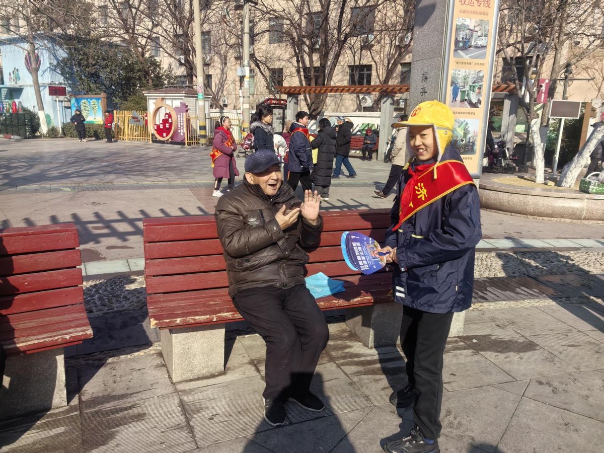 为了增强社区居民防范诈骗的意识,提升队员们的社会实践能力,2月8日上午,五(2)中队的队员们在辅导员张钦喜老师的带领下,化身反诈宣传员,用稚嫩却坚定的声音,为居民们传递着防骗知识。