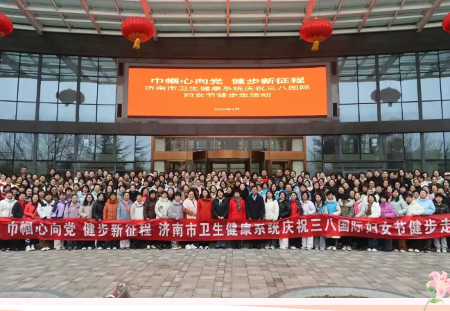 为庆祝“三八”国际妇女节116周年,丰富女职工精神文化生活,展现卫生健康系统巾帼风采,近日,由济南市卫生健康委员会主办的“巾帼心向党 健步新征程”健步走活动在风景如画的莱芜雪野湖畔举行。济南护理职业学院积极响应号召选派6名女职工代表参加此次活动,与系统内各单位的姐妹们共赴一场充满活力与温情的春日之约。