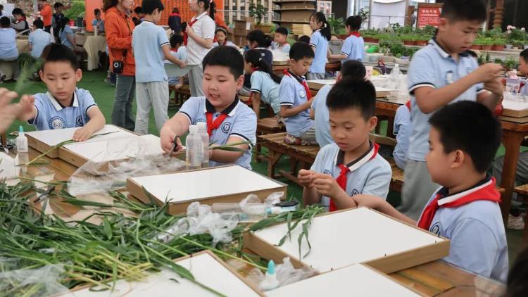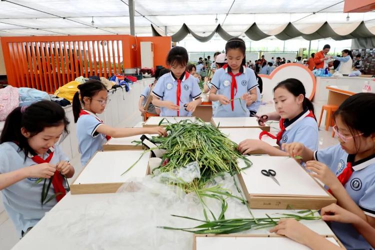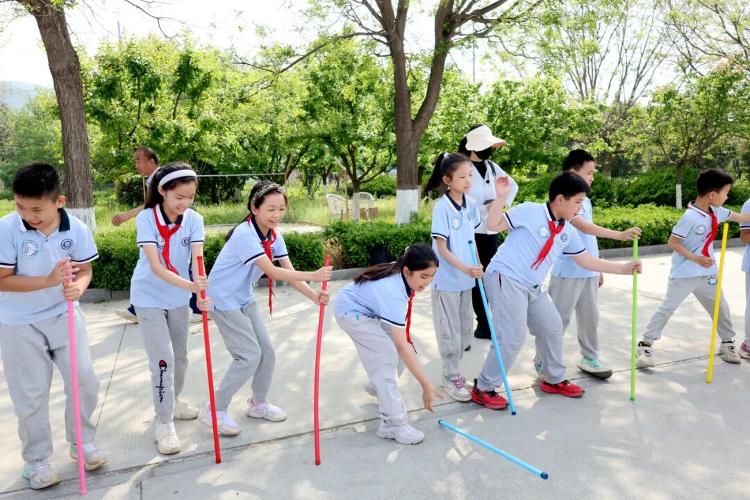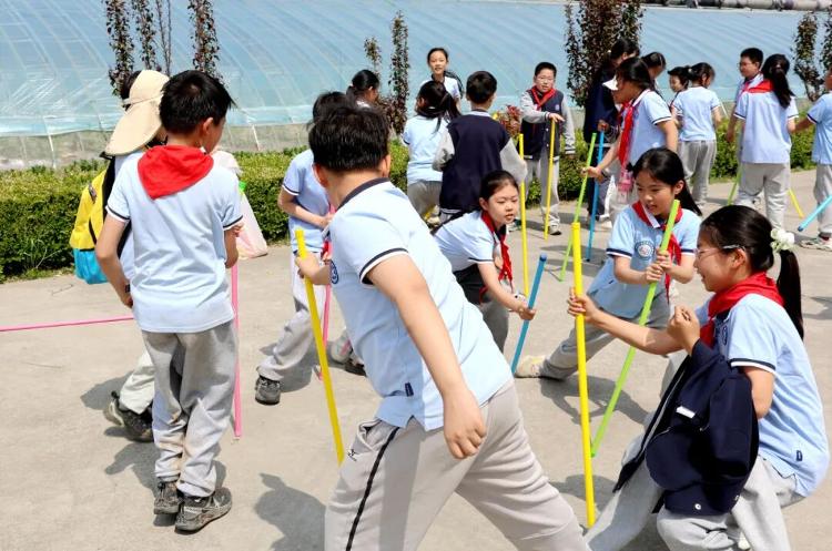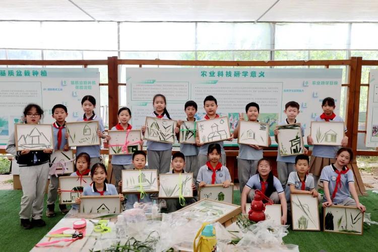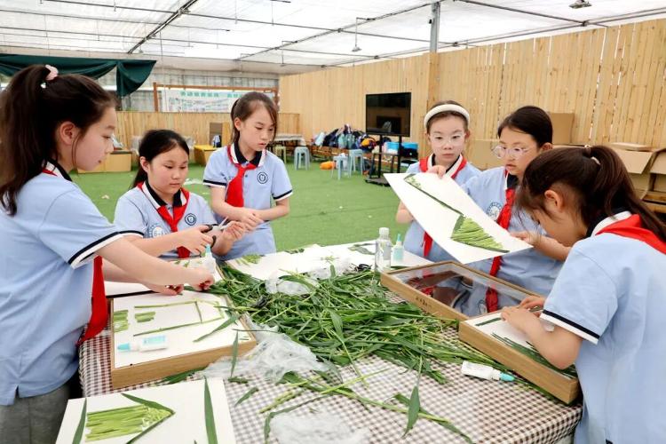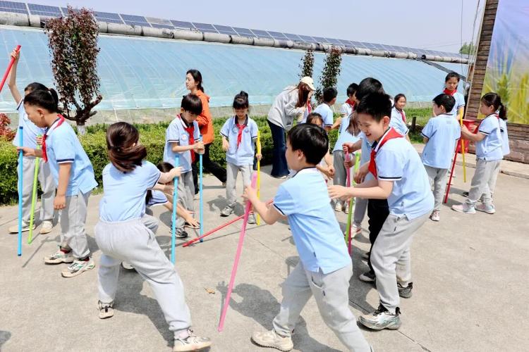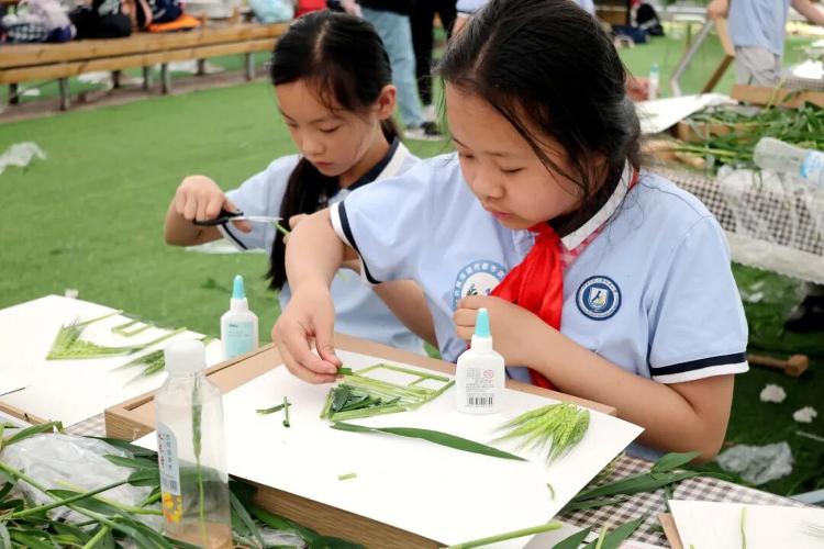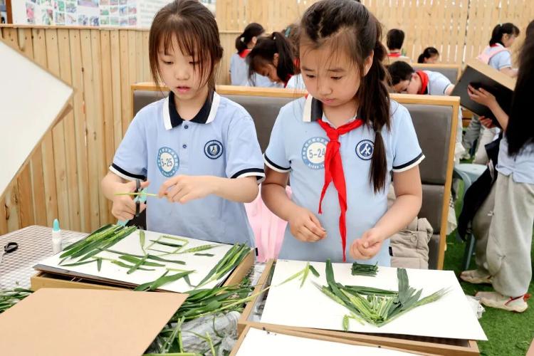 午后,趣味与创意兼具的拓展实践活动如期开展。在“根根相连——移杆接力大挑战”游戏中,同学们齐心协力、密切配合,在轻松欢乐的氛围里,直观感受团结互助的深刻意义;麦秆手工课堂上,师生就地取材,利用田间废弃麦秆,通过精心裁剪、创意拼接,制作出一件件寓意“节节高升、向阳成长”的麦秆贴画。同学们在动手创作中践行绿色环保理念,更将田间劳动的点滴收获,化作了独具巧思的艺术作品。