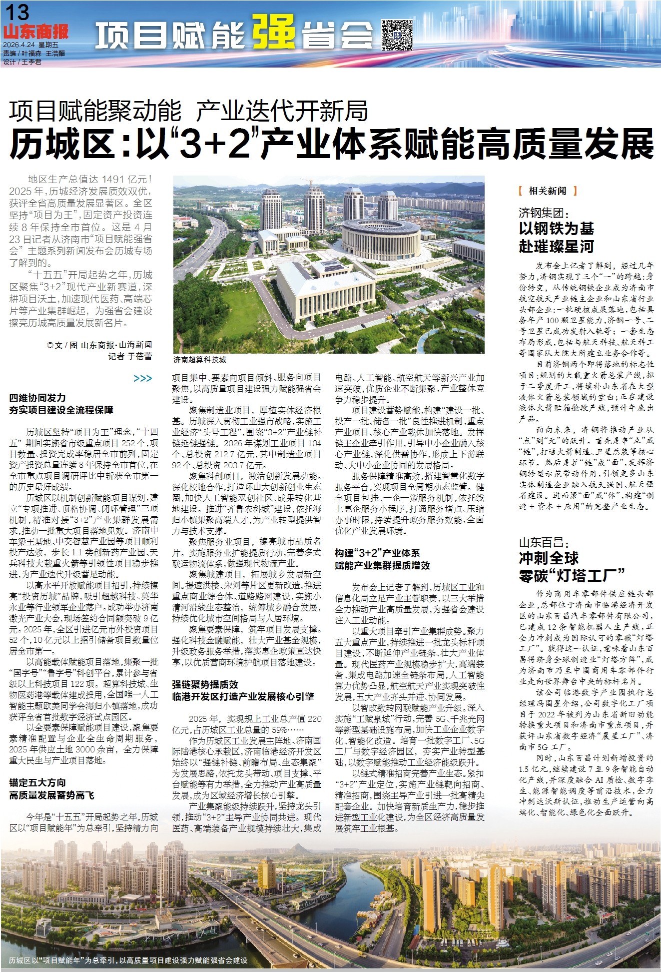 “十五五”开局起势之年,历城区聚焦“3+2”现代产业新赛道,深耕项目沃土,加速现代医药、高端芯片等产业集群崛起,为强省会建设擦亮历城高质量发展新名片。