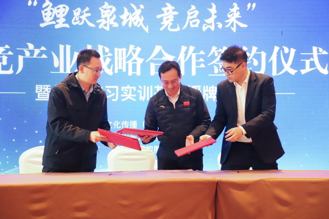 12月10日下午,历城控股集团与山东体育学院、红鲤文化传播(武汉)有限公司三方战略合作签约仪式暨山东体育学院实习实训基地授牌仪式在济南