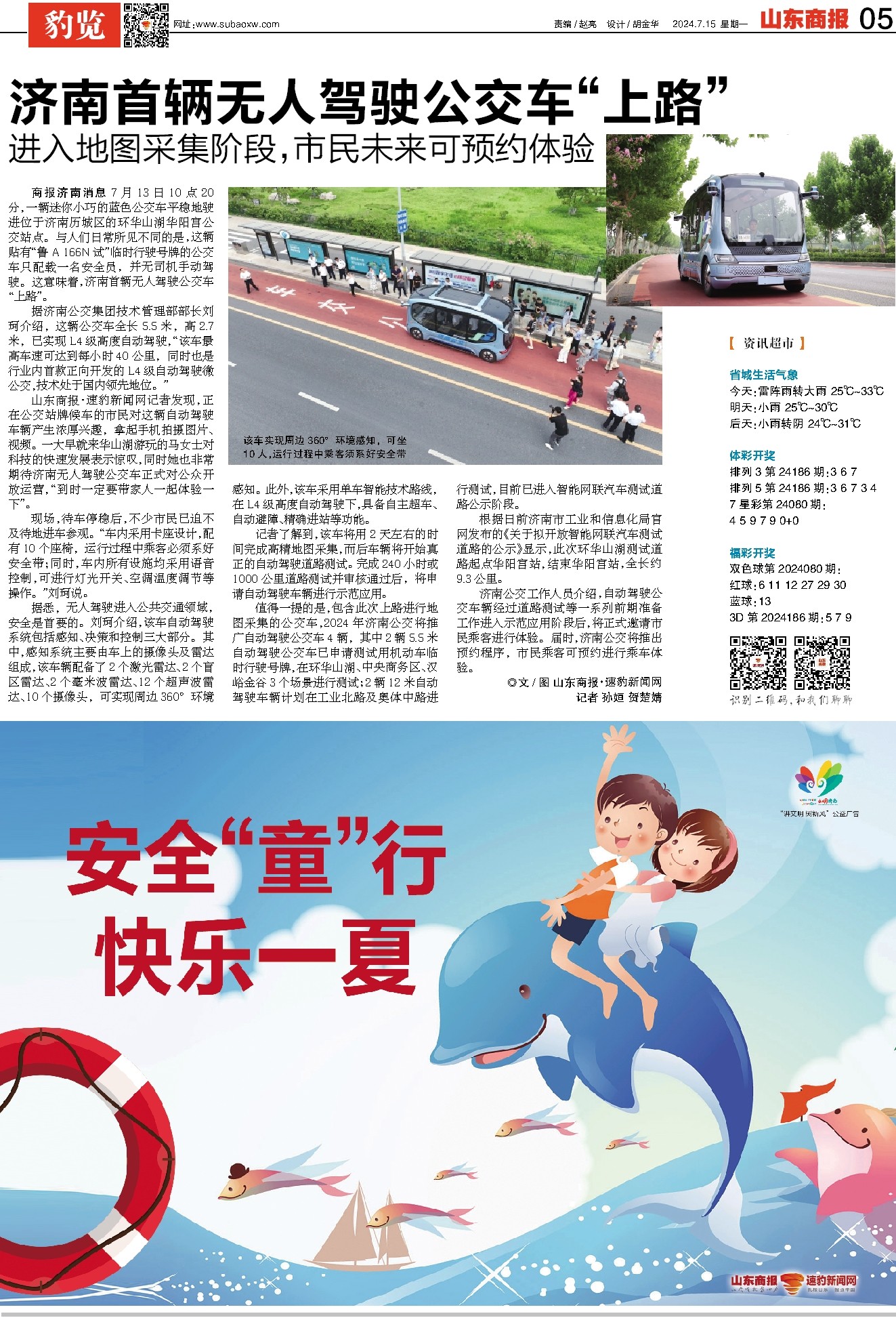 山东商报·速豹新闻网记者发现,正在公交站牌候车的市民对这辆自动驾驶车辆产生浓厚兴趣,拿起手机拍摄图片、视频。一大早就来华山湖游玩的马女士对科技的快速发展表示惊叹,同时她也非常期待济南无人驾驶公交车正式对公众开放运营,“到时一定要带家人一起体验一下”。