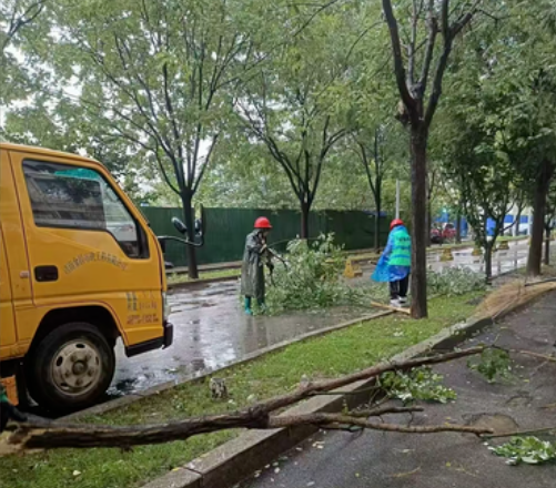10月5日清晨6点50分,济南历下区园林绿化服务中心工作人员巡查发现,燕子山西路南首路东一棵国槐倒伏影响交通,立即安排人员、机械赶赴现场冒雨处置,用时30分钟处理完毕恢复通行。