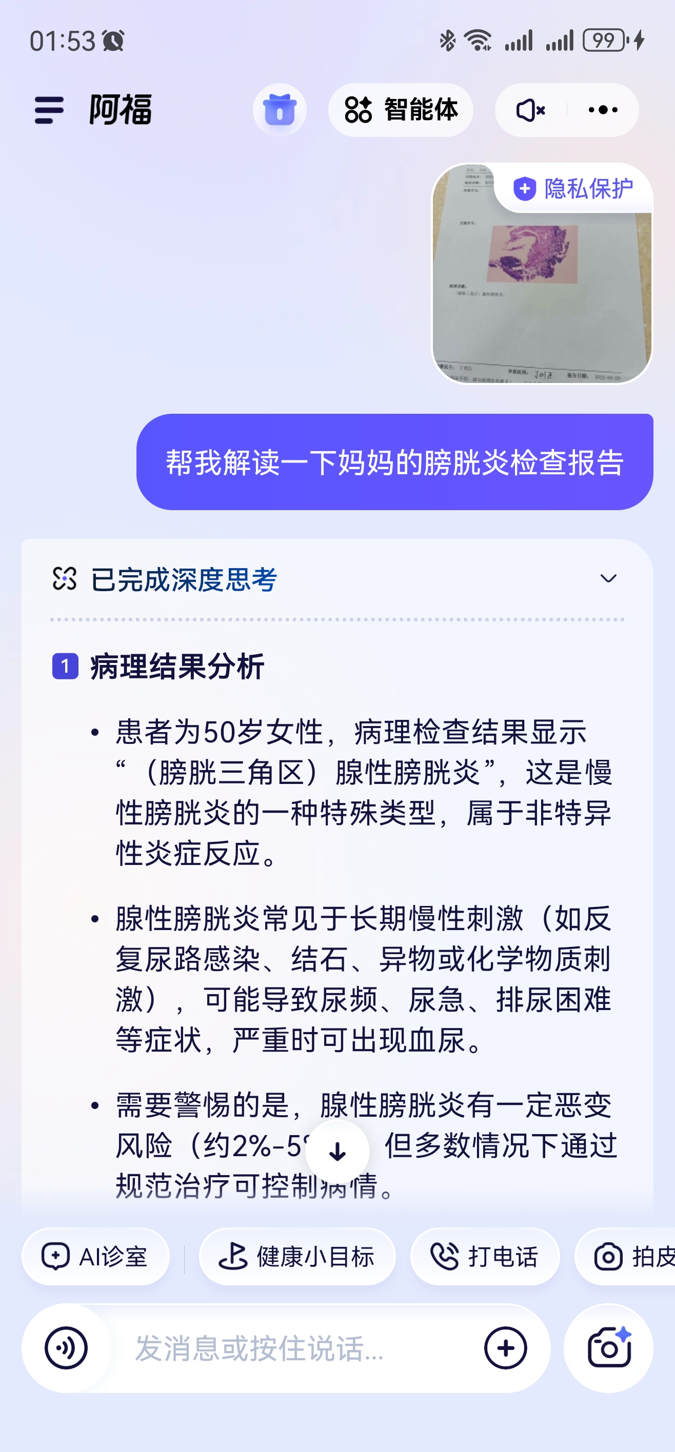 小孙女顺势教家人使用蚂蚁阿福,帮爷爷奶奶上传体检报告,AI快速、通俗地解读各项指标,以前看不懂的专业数据,现在一目了然。爷爷笑着说:“现在手机就能看懂体检报告,真是太省心了。”