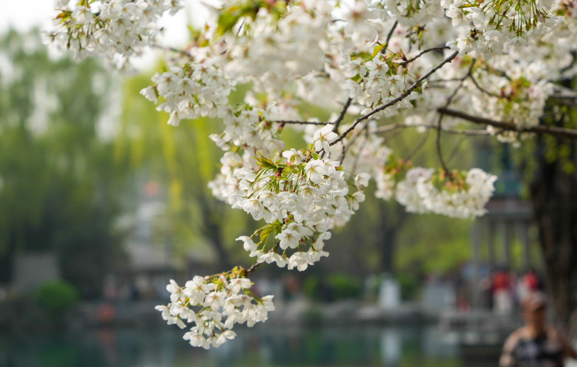 近日,山东省济南市气温回升,五龙潭公园内大面积种植的樱花进入盛开期,吸引众多市民前来观赏。