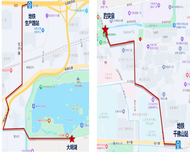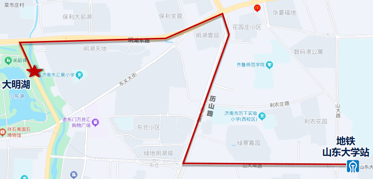 假日地铁接驳1号线:地铁山东大学站——大明湖(大明湖东门)