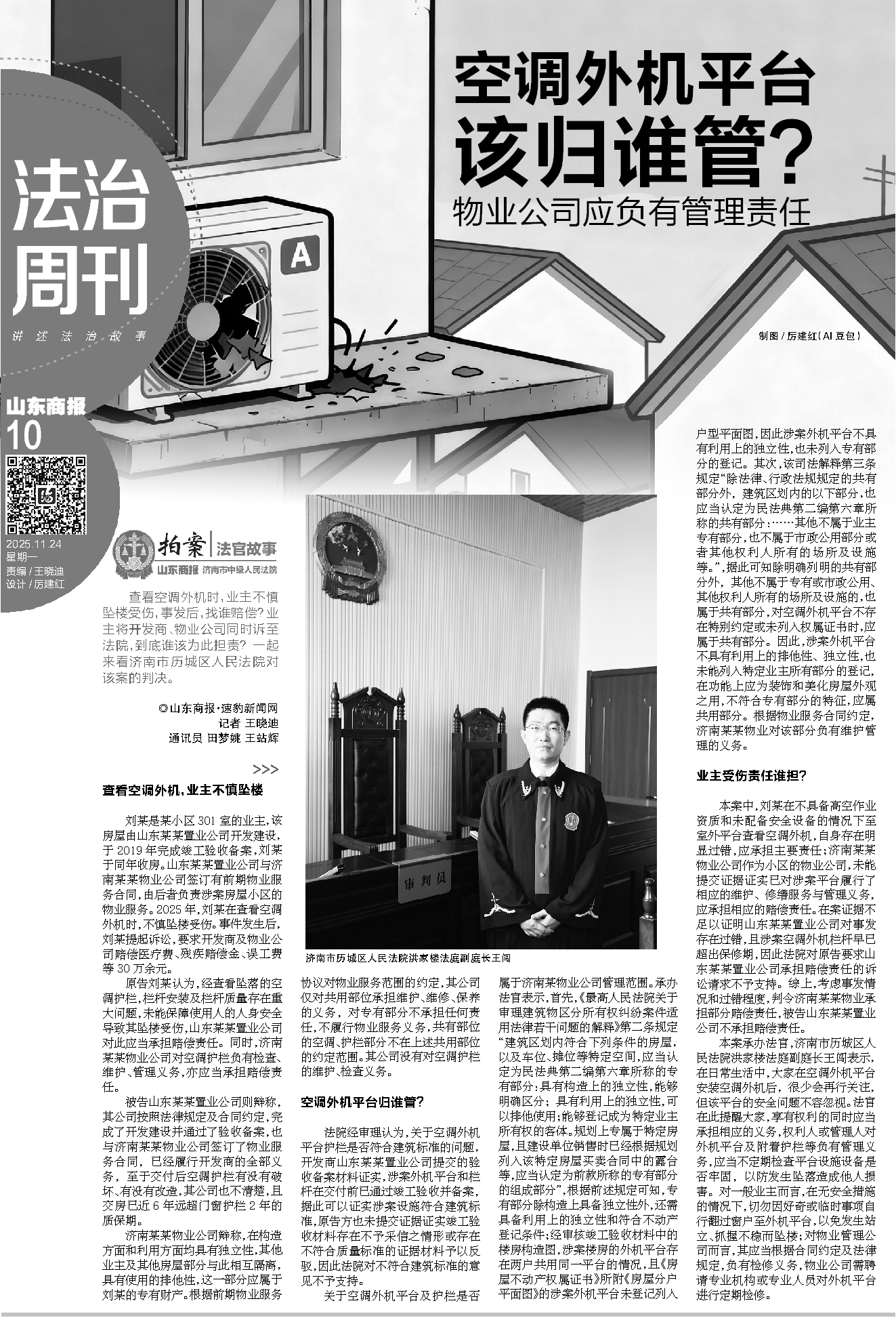 山东商报·速豹新闻网记者 王晓迪 通讯员 田梦姚 王站辉查看空调外机时,业主不慎坠楼受伤,事发后,找谁赔偿?业主将开发商、物业公司