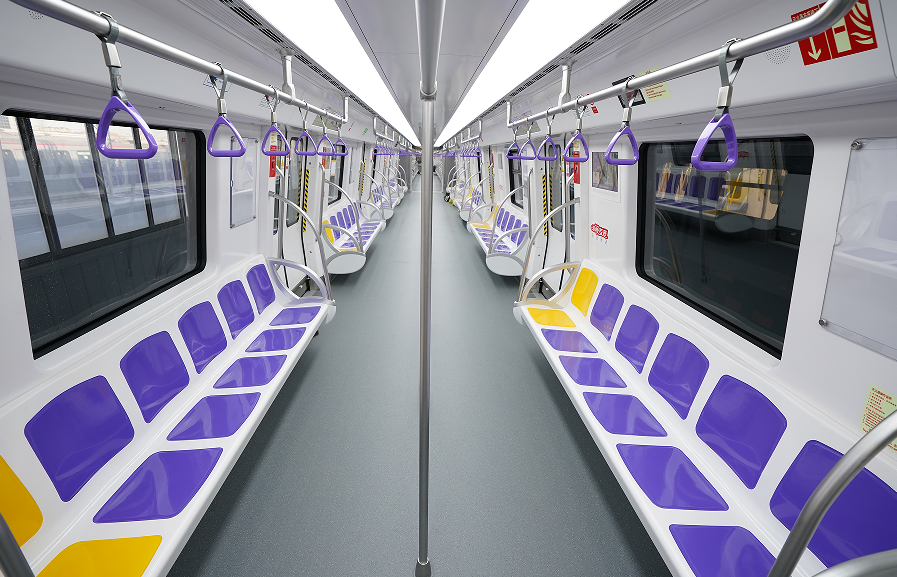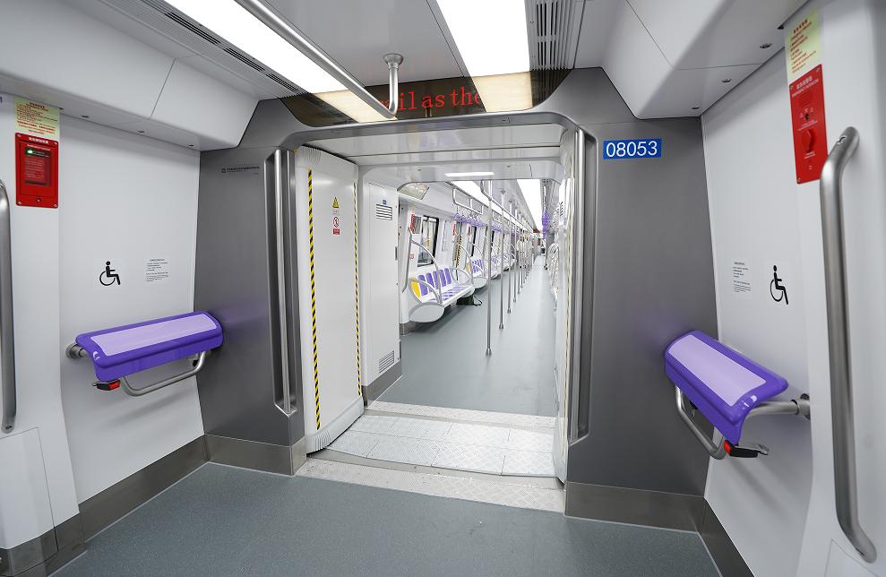 列车车体及头罩均采用铝合金材料,通过精密焊接与表面处理技术,实现金属原貌直接示人,整车相较于8号线有涂装列车减重约1.2吨,位于国内A型地铁列车轻量化第一梯队。制造过程中挥发性有机物(VOCs)排放大幅减少,更环保;后期运营中也省去了面漆修补维护的麻烦,可谓“一次成型,终身免妆”。