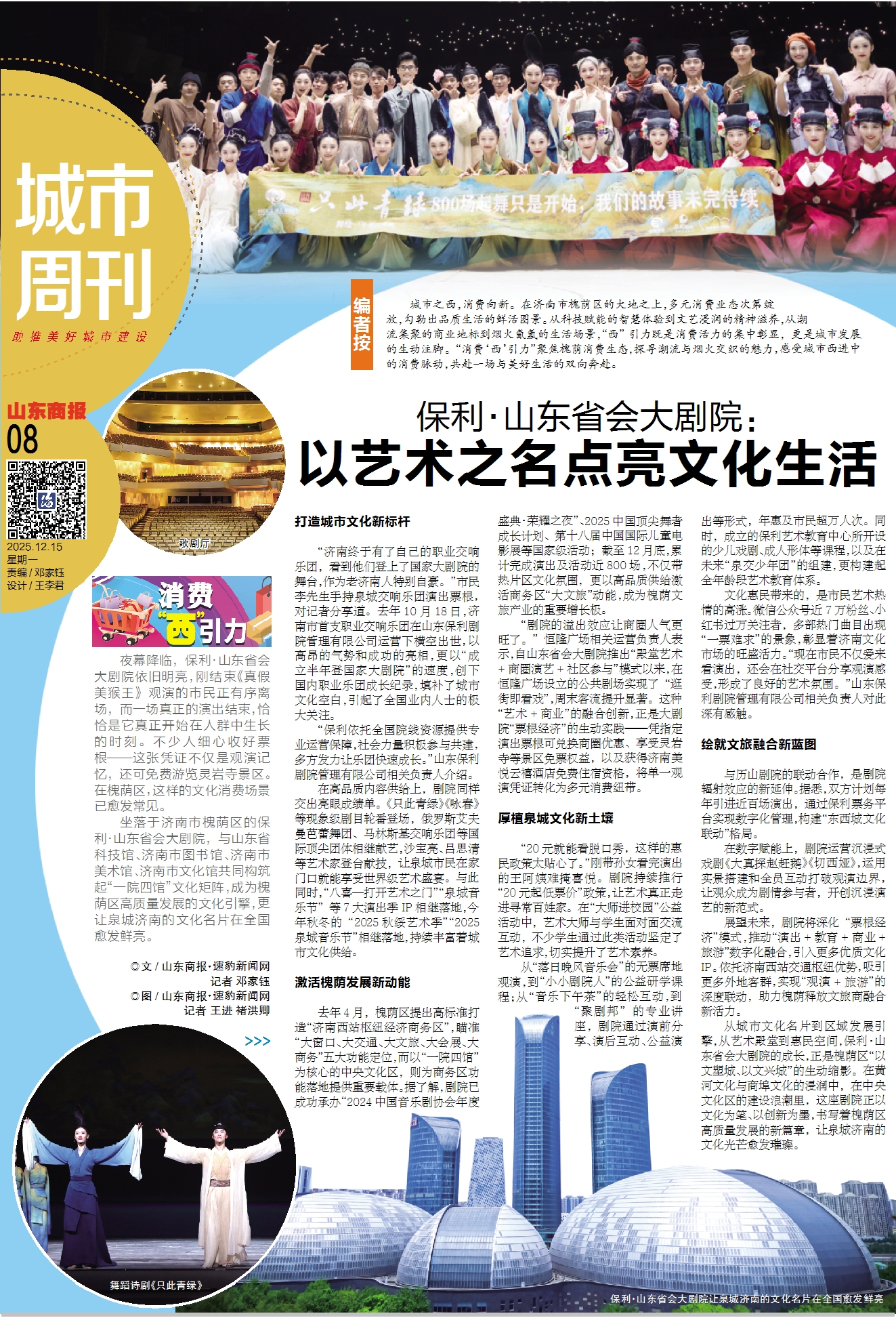 从城市文化名片到区域发展引擎,从艺术殿堂到惠民空间,保利·山东省会大剧院的成长,正是槐荫区“以文塑城、以文兴城”的生动缩影。在黄河文化与商埠文化的浸润中,在中央文化区的建设浪潮里,这座剧院正以文化为笔、以创新为墨,书写着槐荫区高质量发展的新篇章,让泉城济南的文化光芒愈发璀璨。