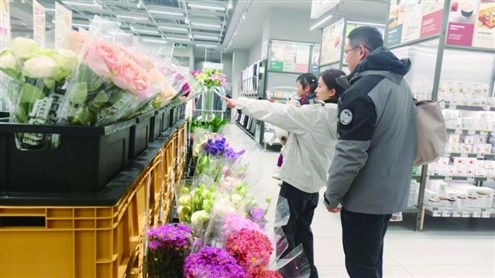 近日,山东商报·速豹新闻网记者来到济南龙湖奥体天街商场内的鹿岛会员店探访,看到数十种鲜花绿植陈列在入口处的显眼位置,9.9元一束的亲民定价,吸引了一些中老年人和带着孩子的夫妻驻足选购。