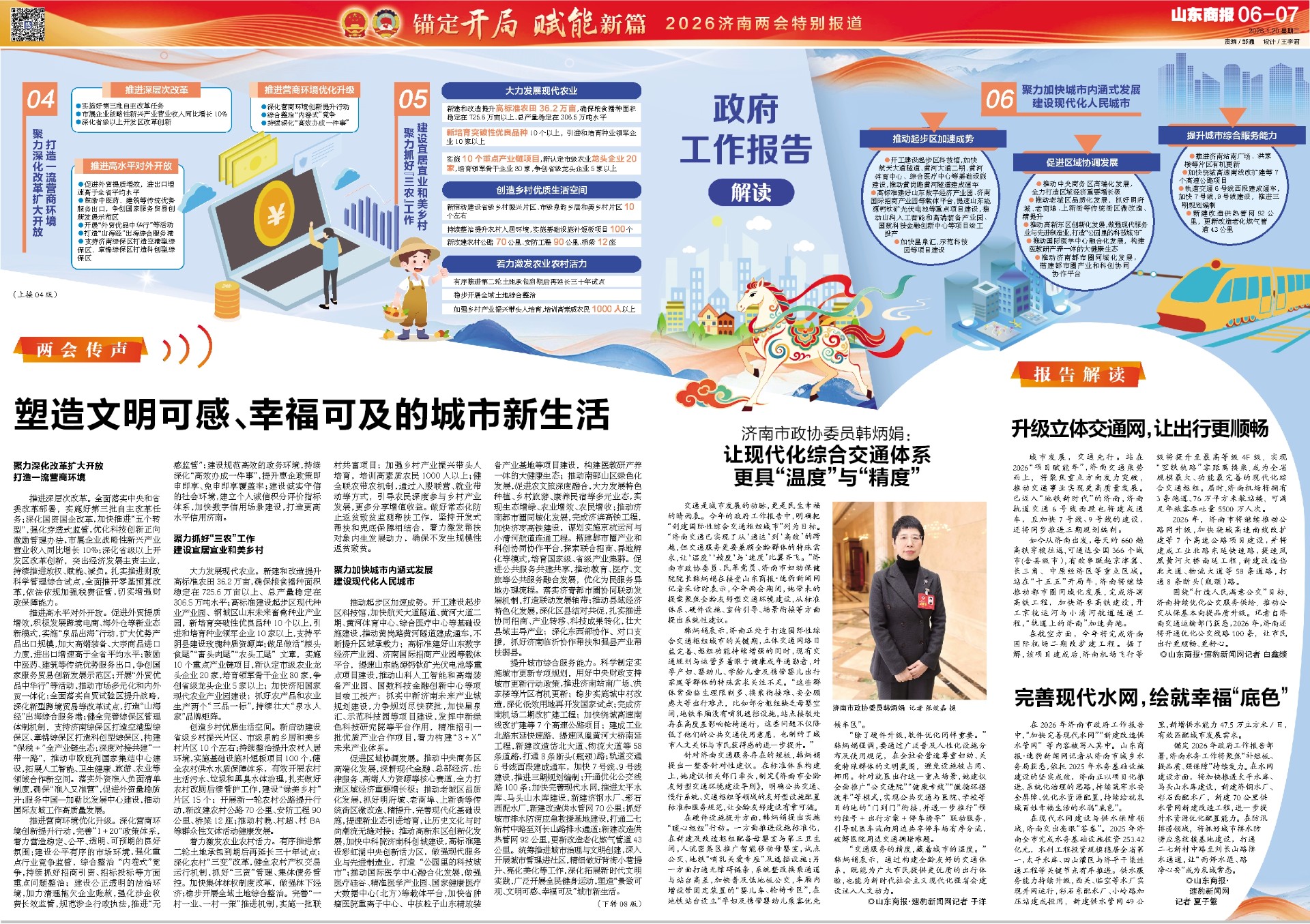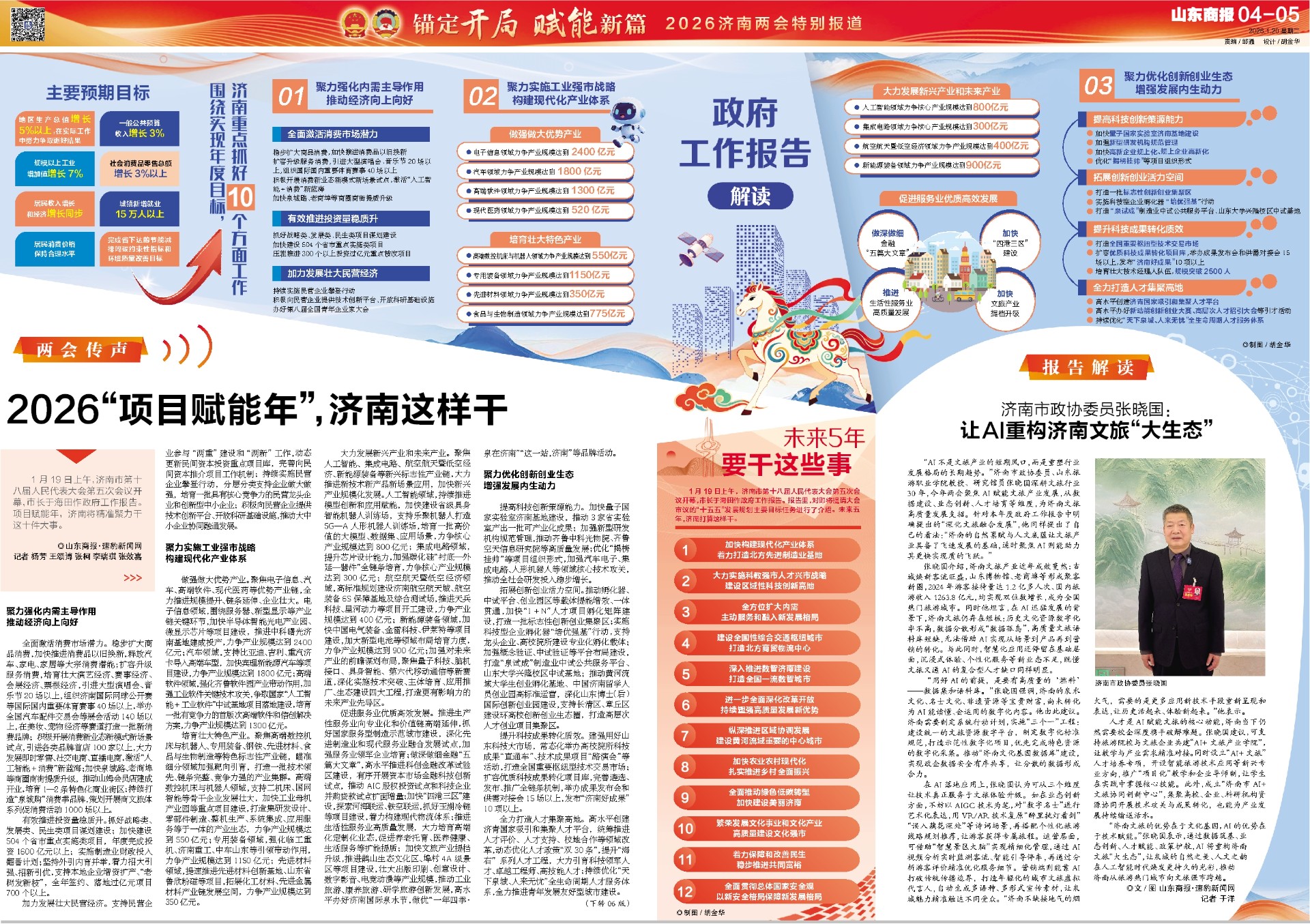 1月19日上午,济南市第十八届人民代表大会第五次会议开幕,市长于海田作政府工作报告。项目赋能年,济南将精准聚力干这十件大事。